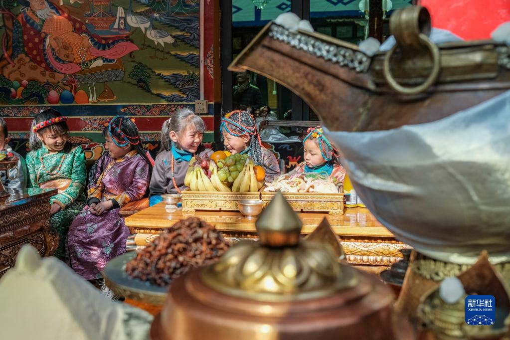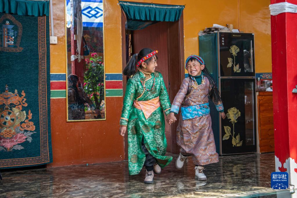 今年,日喀則藏歷農家年和春節“巧遇”同一天,雖習俗不同,但年味皆濃。次旦的兒孫早早開車去縣城采買了年貨,兒媳婦們在家準備過年吃的羊頭、切瑪等傳統特色美食。家中的第四代,次旦老人的重孫子和重孫女們,則穿上了漂亮的藏裝,頭戴綠松石點綴的頭飾,在家中歡快地跑來跑去。