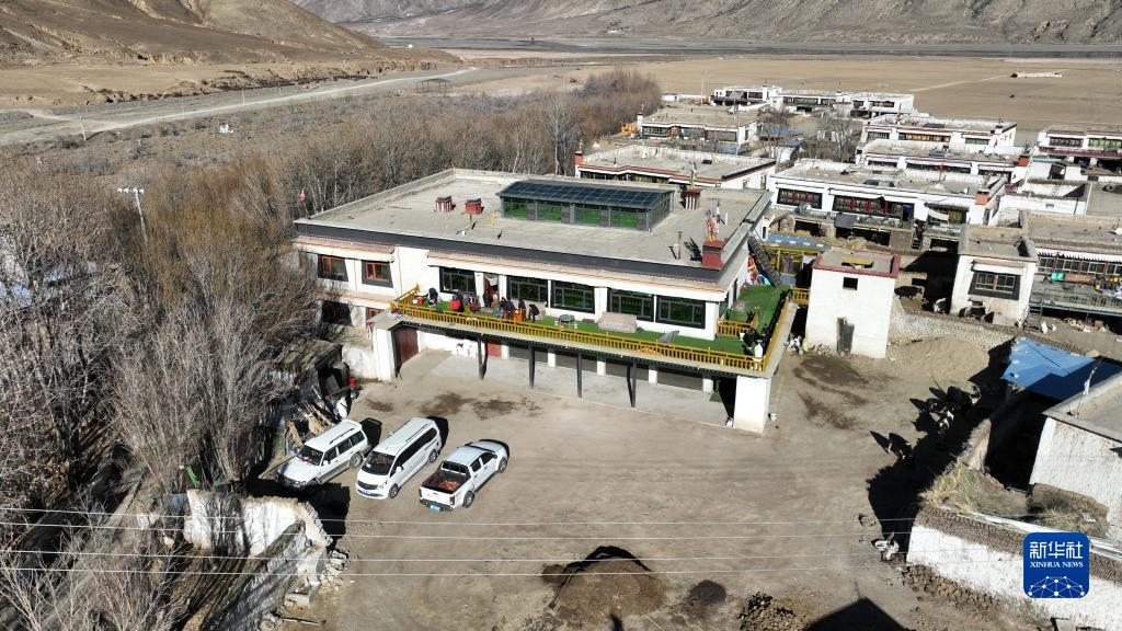 西藏日喀則市拉孜縣扎西宗鄉雜村次旦老人家的二層小樓(1月22日攝,無人機照片)。新華社記者 晉美多吉 攝