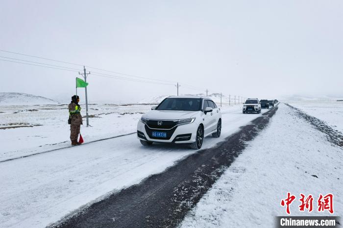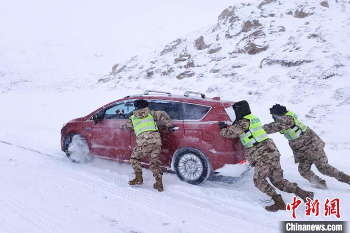 圖為武警官兵幫助過往車輛。 李庚路 攝