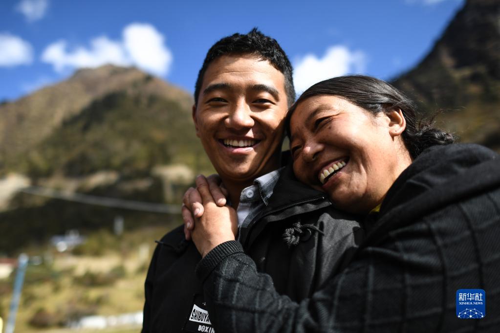 央宗和兒子索朗頓珠在一起(2017年10月29日攝)。索朗頓珠是玉麥鄉第一位大學生。新華社記者 普布扎西 攝