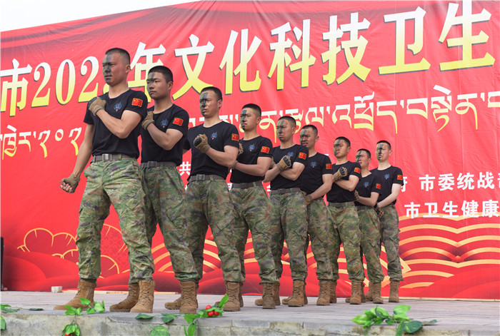 市政府副市長玉珍出席儀式并致辭。部分基層黨代表、人大代表、政協(xié)委員、駐地官兵代表和農牧民群眾共計230余人參加活動。