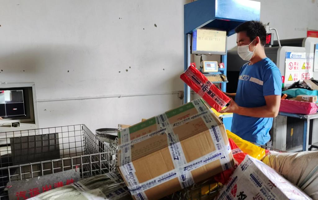工作人員在日喀則市中通快遞網點分揀包裹。新華社記者劉洲鵬 攝