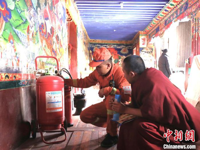 “景區內的宗教寺廟木質結構比較多,周圍森林資源豐富,平時要注意用火安全,防止火災發生。”這是林芝市森林支隊消防員正在為德木寺景區工作人員和僧人宣傳森林消防安全常識。