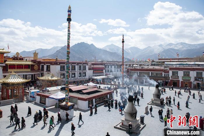 楊柳抽芽、桃李含苞。3月,海拔3600多米的高原古城拉薩處處可見春天的氣息。林廓、八廓等轉經道上的藏傳佛教信眾、市民,以及來自五湖四海在大昭寺、布達拉宮參觀的游客人流如織,大家共同沐浴著高原的春風。