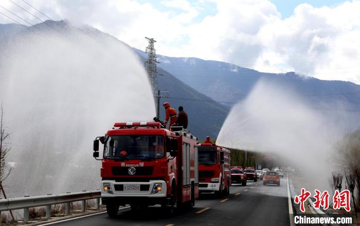林芝市森林消防支隊消防員正在進(jìn)行灑水增濕作業(yè)。西繞拉翁 攝