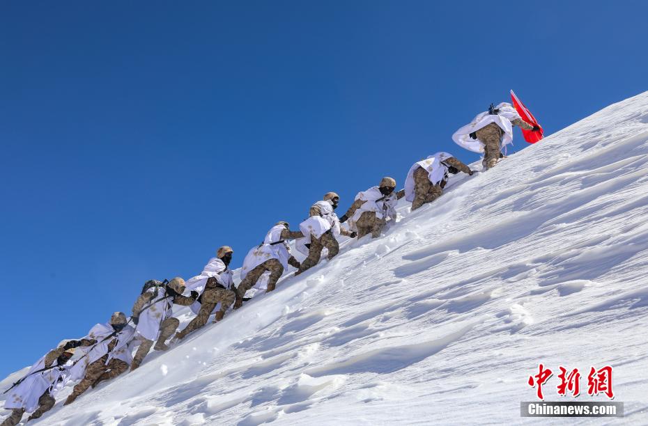 3月21日,阿里軍分區(qū)某邊防團(tuán)巡邏官兵翻越冰雪達(dá)坂向點位前行。李海亮 攝