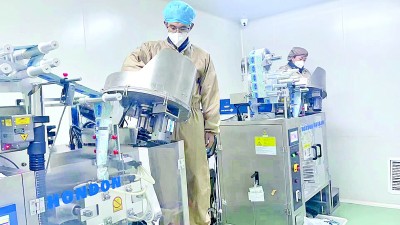 西藏甘露藏藥股份有限公司藏藥生產車間內,工人在忙碌。次仁拉姆攝/光明圖片