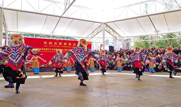 連日來,拉薩市城關區、堆龍德慶區,山南市瓊結縣、那曲市班戈縣分別舉行紀念西藏百萬農奴解放64周年文藝表演。優美的歌聲、熱情的舞步,不時贏得在場觀眾的陣陣喝彩??赐暄莩?,群眾益西旦增激動地說:“64年來,西藏發生了翻天覆地的變化,我們的生活越來越好,大家從內心深處感謝黨和國家。”