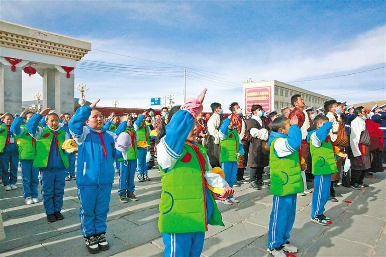 28日,西藏大學、拉薩市教育局組織學生開展“升國旗、唱國歌”活動,并觀看《復興之路》和《人格的力量——中國共產黨人的家國情懷》兩個直播課堂,革命先烈為實現國家解放和民族復興前仆后繼、視死如歸的英雄事跡深深打動了每一名學生。西藏大學學生向秋雨說:“我們要以史為鑒,開創未來,扎實學好專業知識,維護祖國統一,鑄牢中華民族共同體意識,讓青春之花在祖國最需要的地方絢麗綻放?!?/p>