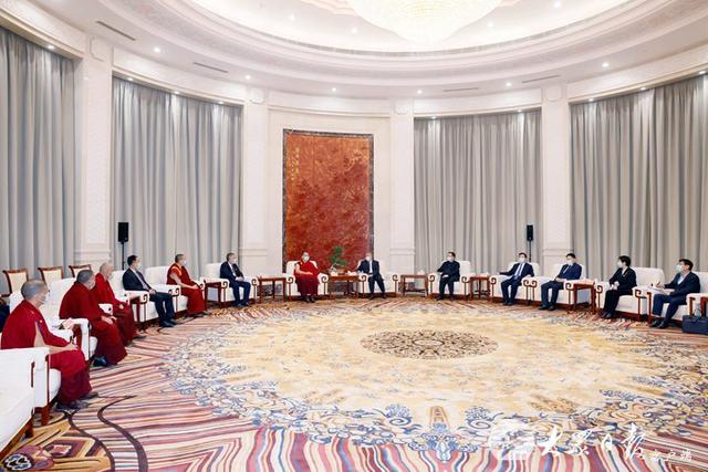 林武代表省委、省政府對班禪的到來表示熱烈歡迎,并簡要介紹了山東經濟社會發展情況。他說,山東是人口大省、經濟大省、文化大省,當前正深入貫徹黨的二十大精神,錨定“走在前、開新局”,堅決打好強信心、穩經濟、促發展組合拳,經濟呈現全面復蘇、加快向好的發展態勢。近年來,我們全面貫徹新時代黨的治藏方略,加強對口援藏工作,“魯藏一家親”結出累累碩果。山東是全國宗教工作重點省份,我們深入學習習近平總書記關于宗教工作的重要論述,全面落實黨的宗教信仰自由政策,全省宗教領域保持和諧穩定的良好局面。班禪是藏傳佛教大活佛,堅定擁護中國共產黨的領導,為促進藏傳佛教與社會主義社會相適應發揮了重要作用。相信在您的帶領下,藏傳佛教愛國愛教、護國利民的光榮傳統一定能進一步發揚光大,更好引導信教群眾維護國家統一、民族團結、宗教和諧。