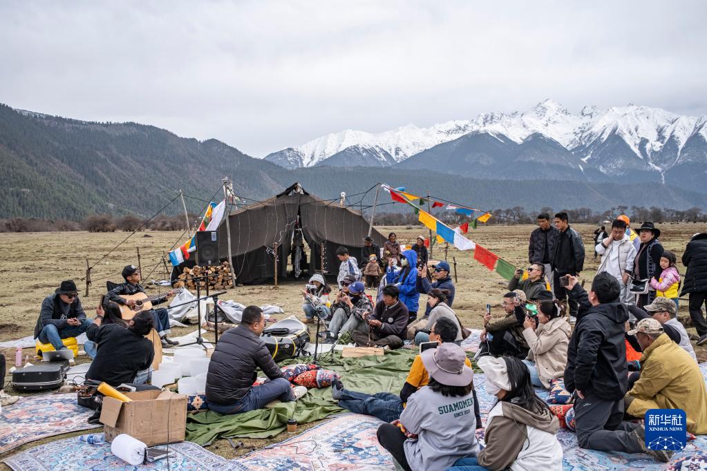 4月15日,在“巴松錯漂流露營大會”現場,游客在觀看文藝表演。新華社記者 曹檳 攝