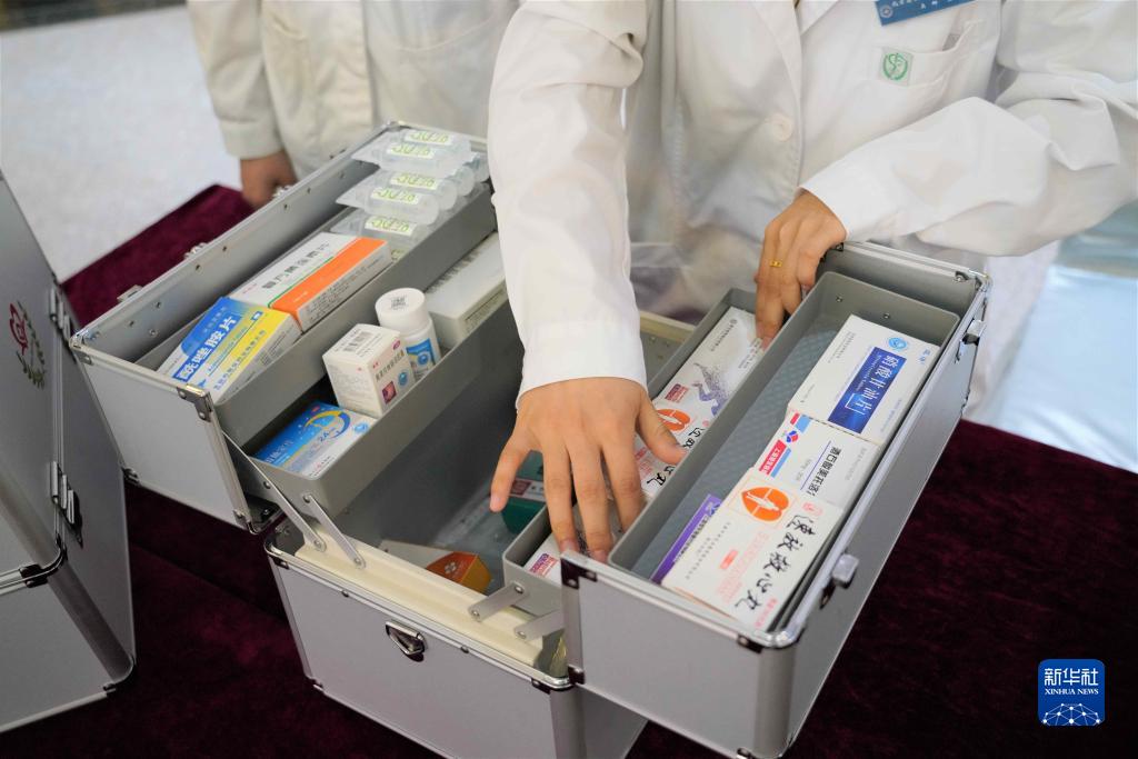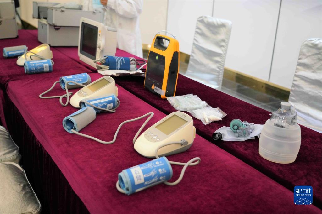 5月26日,北京高原適應研究康復中心的醫護人員在介紹隨車醫藥箱。新華社發(王靜頤攝)