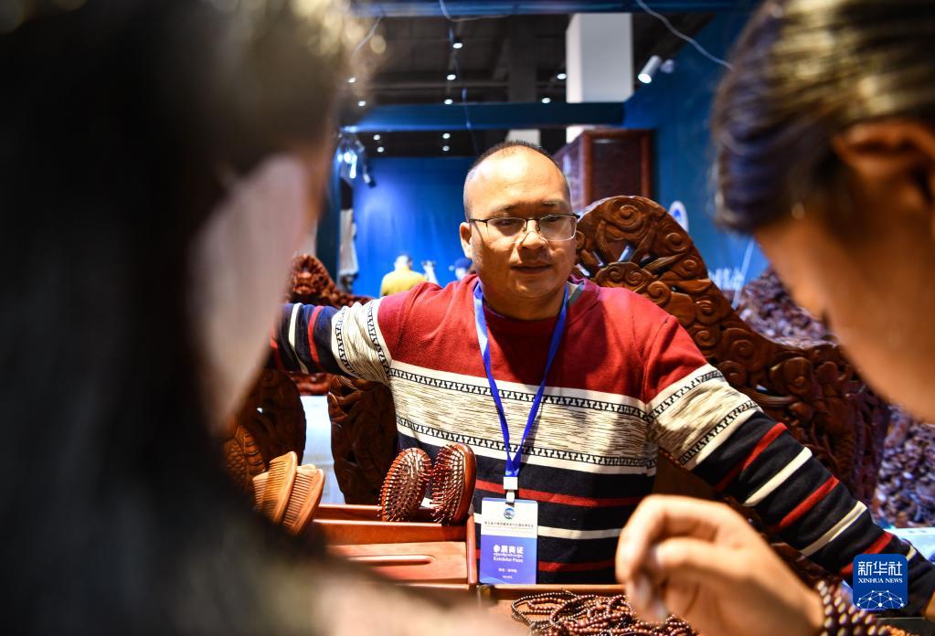 這是展會(huì)上的泰國商人(6月18日攝)。新華社記者 晉美多吉 攝