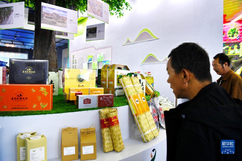在藏博會(huì)上,來自西藏山南市隆子縣的參展商展示玉麥特產(chǎn)(6月17日攝)。新華社記者 張汝鋒 攝