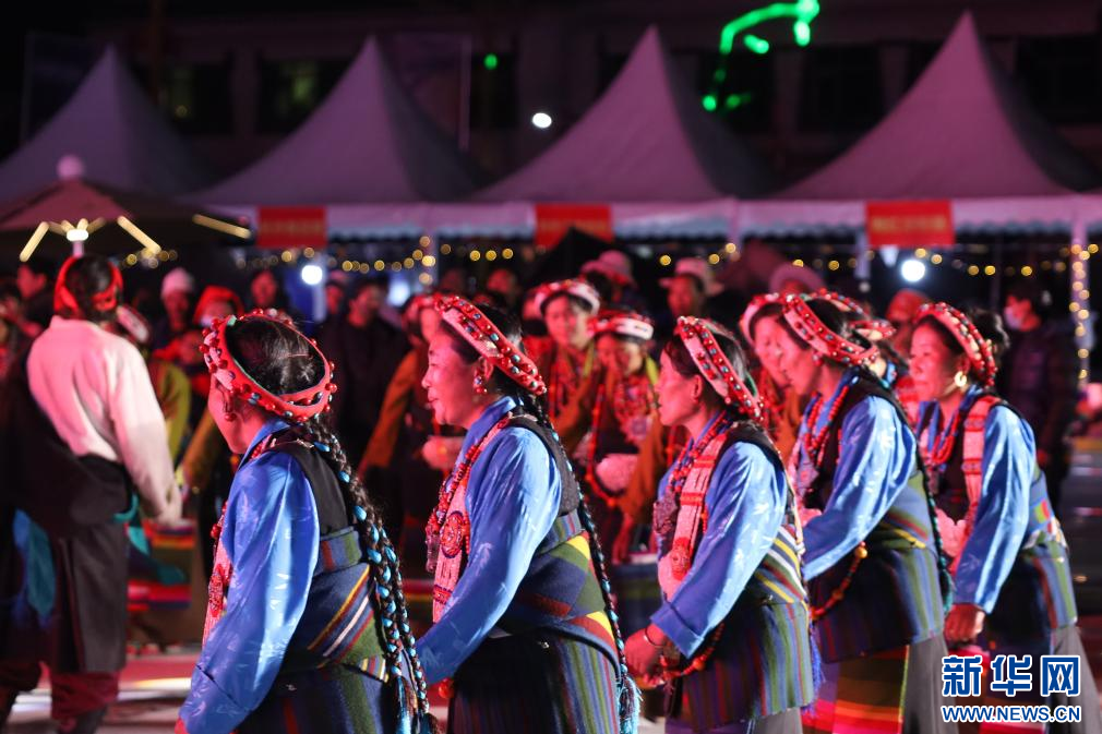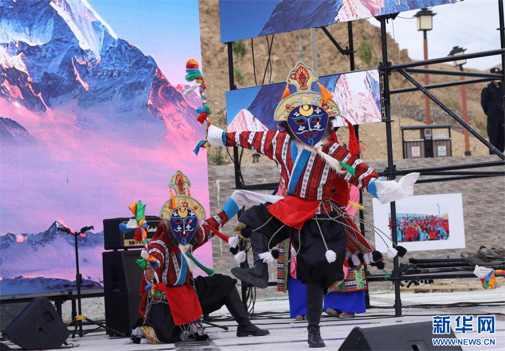 7月23日,在西藏定日2023珠峰音樂美食節現場,民間藝術團表演國家級非物質文化遺產定日洛諧。新華網發 李騰 攝