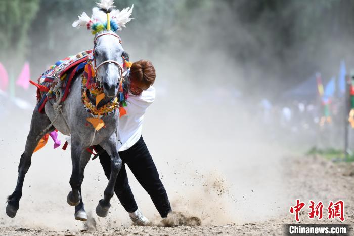 7月24日,在西藏自治區拉薩市曲水縣曲水鎮茶巴朗村村民身著節日盛裝進行賽馬和馬術表演歡度“望果節”。“望果節”已有1500多年的歷史,是國家級非物質文化遺產,流行于西藏拉薩、日喀則、山南等地。