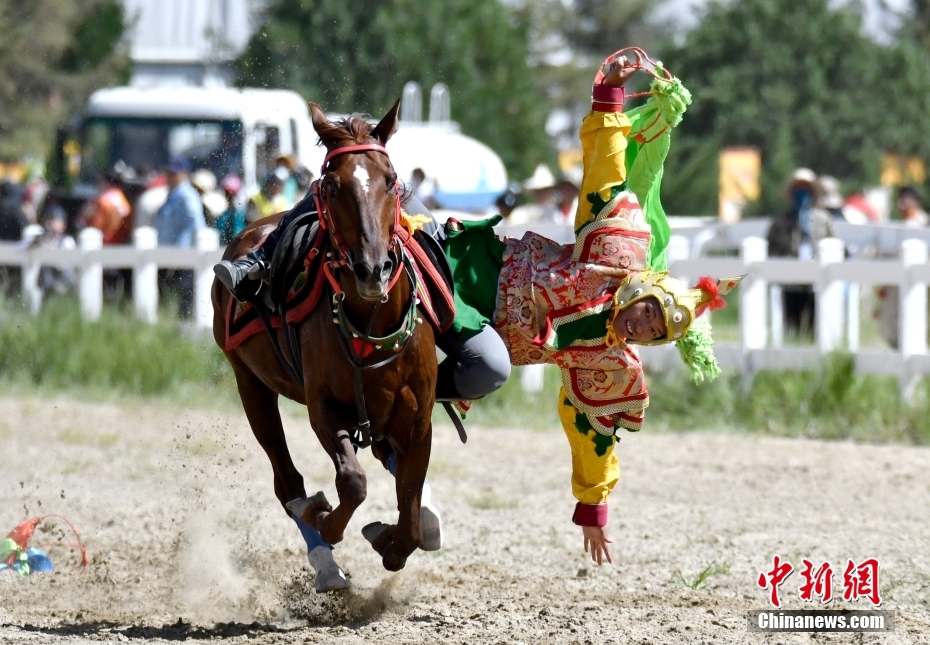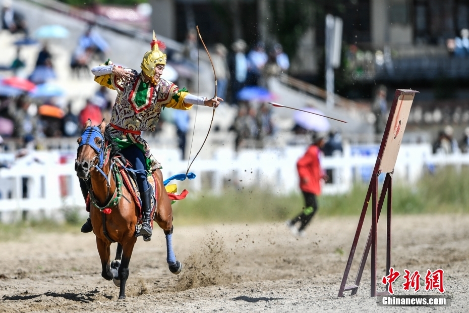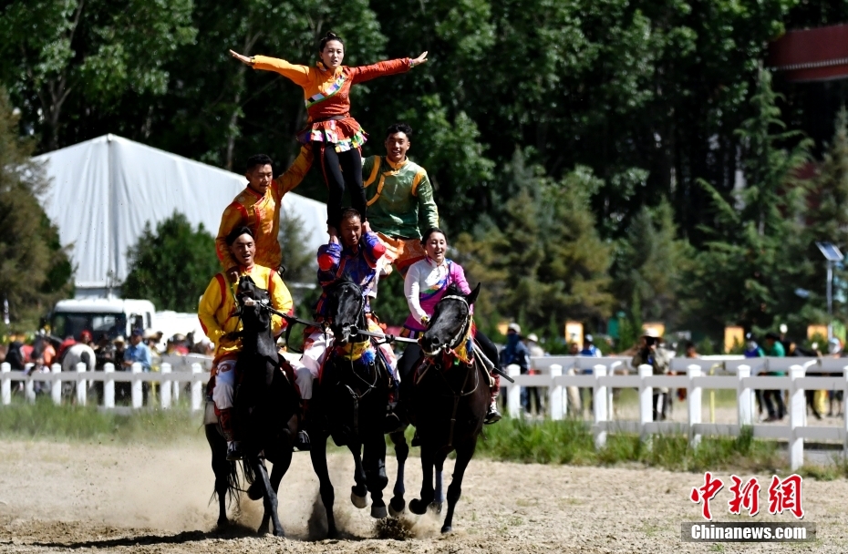 8月17日,騎手們進行馬術表演。當日,2023年拉薩雪頓節民族傳統馬術表演在西藏拉薩市北郊賽馬場舉行。