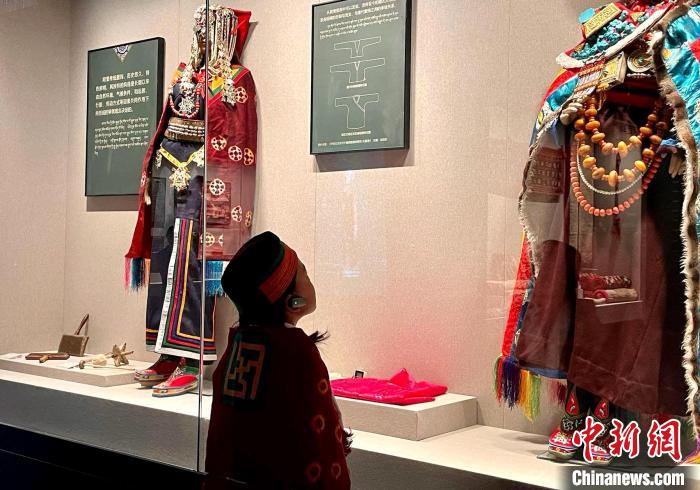 圖為穿著扎達傳統服飾的次仁央宗在參觀阿里博物館?!±妥楷? 攝
