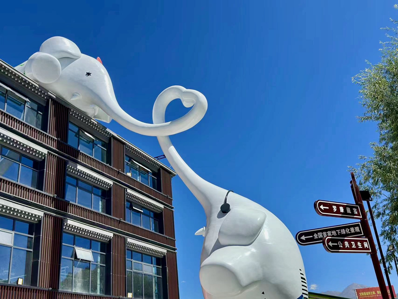 圖為拉薩印街區創意IP雕塑(9月15日攝)。 司秦菱 攝
