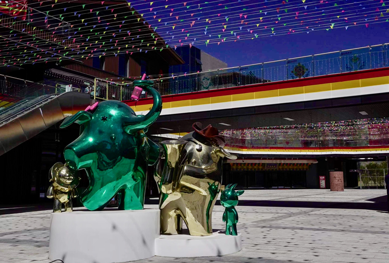 記者日前來到位于柳梧大橋西側的拉薩印第三代沉浸式主題商業街區看到,8棟風格古樸又不失現代感、獨立又相互聯系的商業建筑群已落成,可愛俏皮、形象各異的街區創意IP雕塑分布于各顯眼處。星巴克服務、羅康藏宴、拉薩好物等品牌商家已開始試營業,更多的商家正在入場進行店鋪裝修。