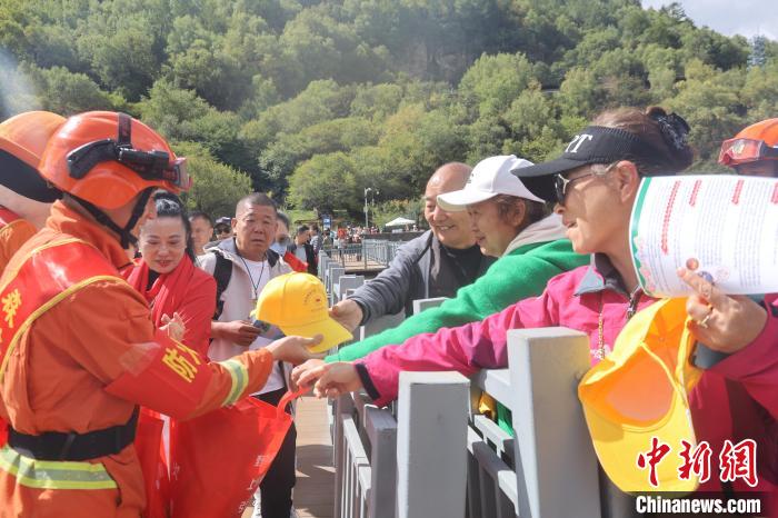 圖為消防員正在景區入口開展防火宣傳。西繞拉翁 攝