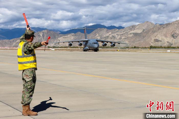 維和部隊官兵搭乘專機抵達拉薩貢嘎國際機場。張琦攝