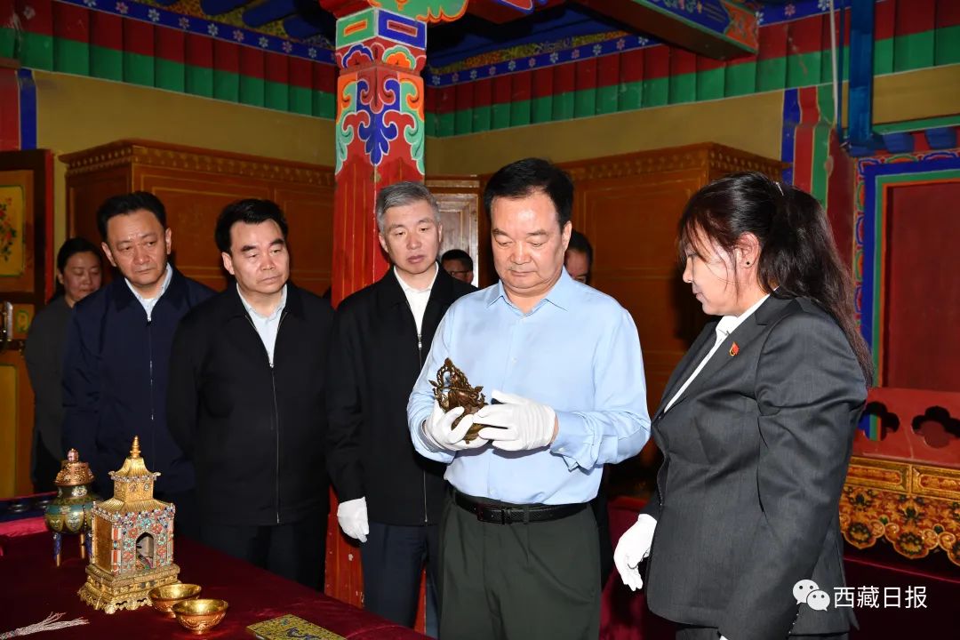 從9月25日前往西藏日報社、西藏廣播電視臺調研,緊接著深入自治區社科院、社科聯和文化廳調研,再到召開自治區黨委常委會會議傳達學習習近平文化思想、召開全區文物工作會議。