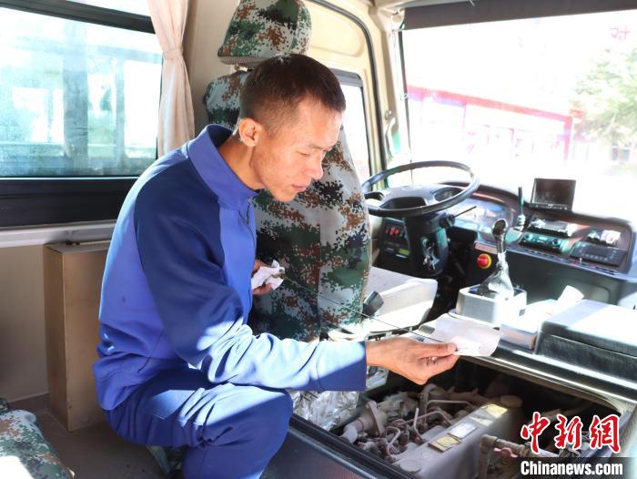 圖為指戰員保養車輛。吳蕾蕾 攝