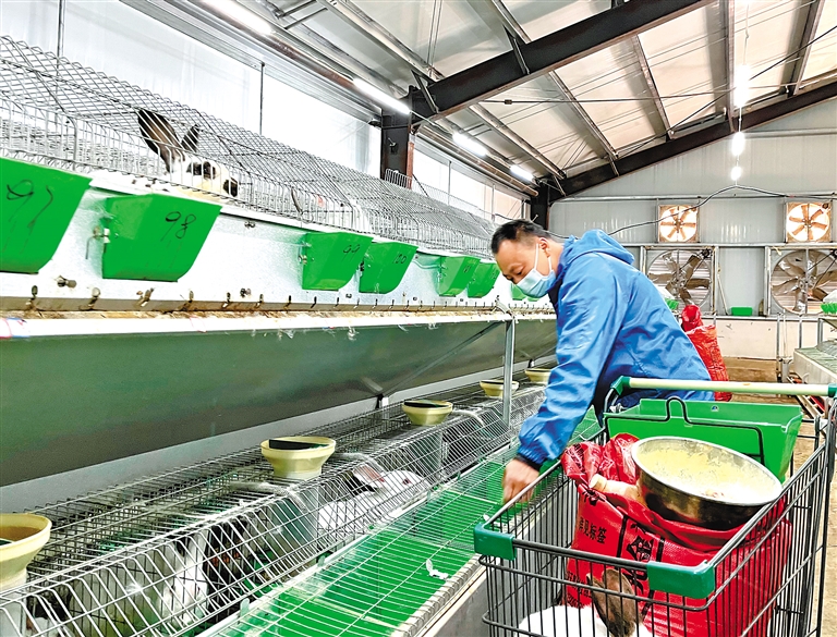 圖為拉薩市曲水縣才納鄉四季吉祥村獺兔養殖場的工人給兔子喂料。記者 旦增蘭澤 攝