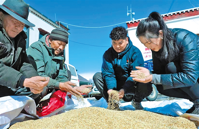 圖為拉薩市墨竹工卡縣農業農村局(農業技術推廣站)技術人員在篩選種子。記者 唐斌 攝