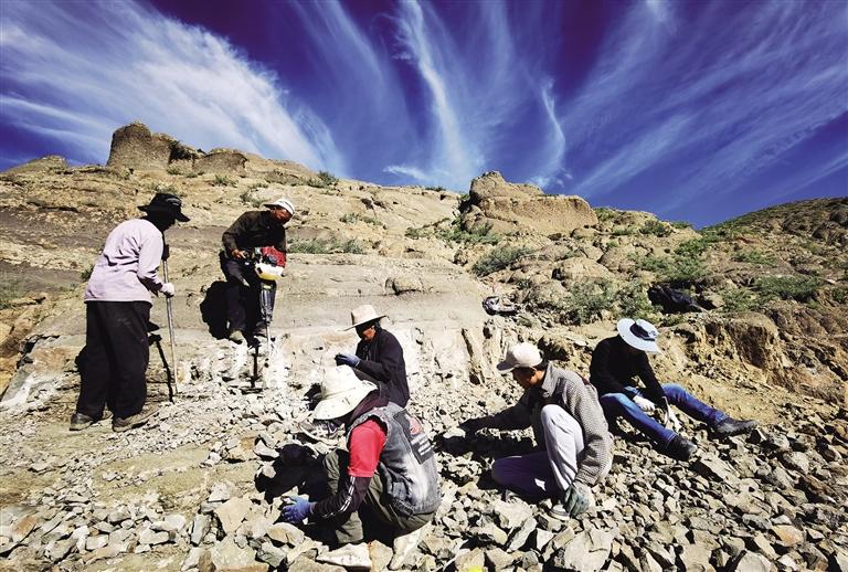 第二次青藏科考期間,中國科學院西雙版納熱帶植物園研究員蘇濤帶領的“生物與高原隆升協同演化”專題的科考分隊,從2017年開始在拉孜開展了多次考察研究,在西藏自治區科考辦和當地村民的協助下,最終在柳鄉發現了化石點并采集少量巖石樣品。