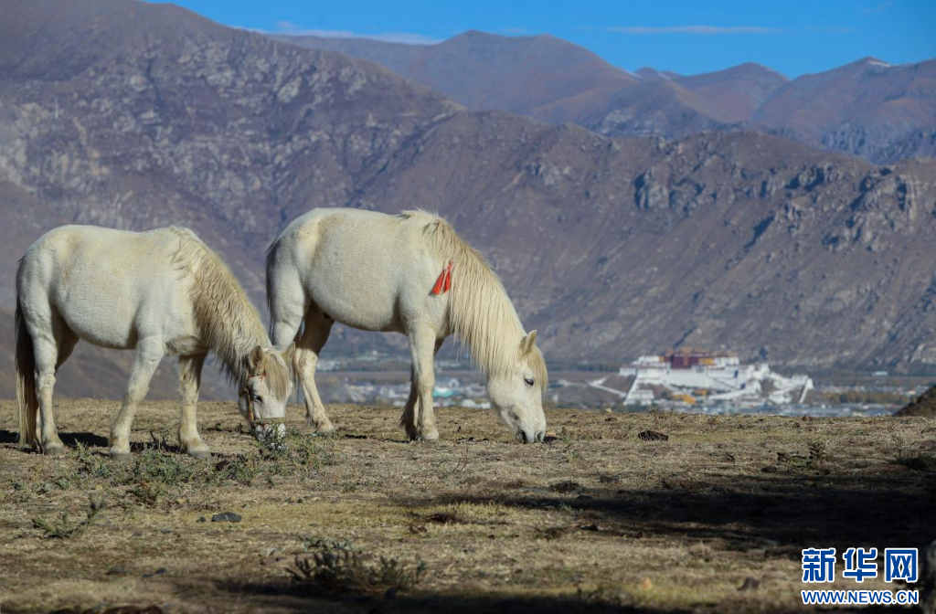 展出的作品《遙望布宮,歲月靜好》。新華網發(納木甲 攝)
