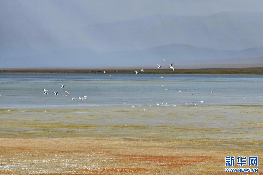 11月17日,在哲古湖拍攝的鳥群(無人機照片)。新華網 旦增努布 攝