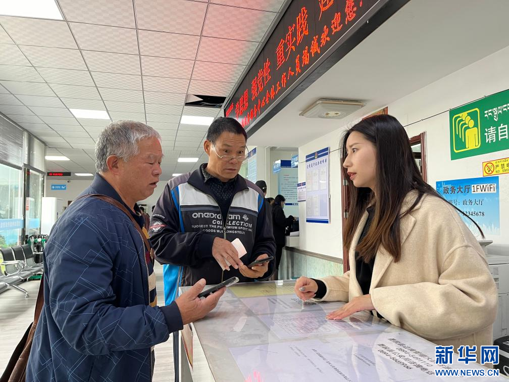 波密縣“無差別受理綜合窗口”工作人員正在為游客講解辦事流程(10月16日攝)。新華社發(熊思雅)
