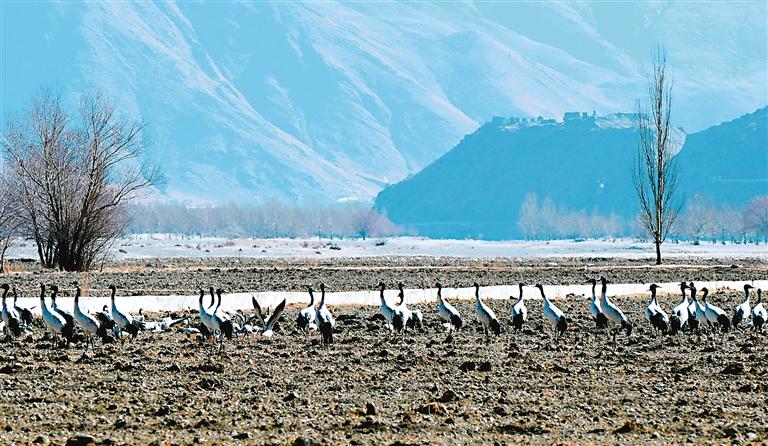黑頸鶴的成群遷徙停歇或繁殖,正是生態環境持續向好的“最美注腳”。近年來,西藏濕地保護與恢復措施逐步實施后,濕地面積逐漸擴大,動物棲息地得到了有效保護,野生動植物數量不斷增加,特別是水禽等鳥類數量明顯增加。