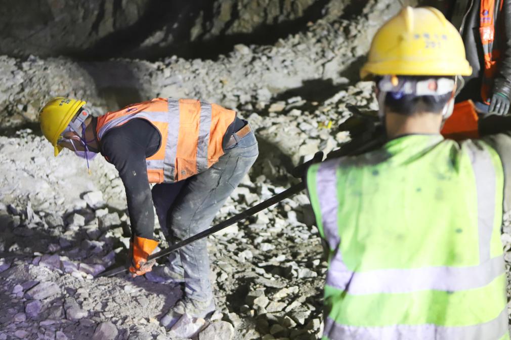 工人在引水隧洞內鉆孔,準備爆破。新華社記者關明輝 攝