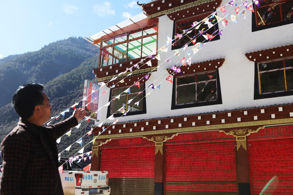 格桑次仁向記者展示自家的新房。新華社記者關明輝 攝