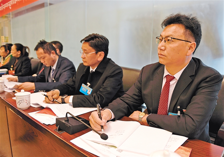 阿里代表團審議政府工作報告。記者 旦增蘭澤 攝