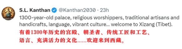 此外,新西蘭媒體人安柏然、《沙特阿拉伯新聞》記者賈邁勒·杜巴希、愛(ài)沙尼亞-中國(guó)商會(huì)主席達(dá)維德·維克托、美國(guó)反戰(zhàn)人士克里斯蒂·富蘭克林,我駐馬爾代夫大使館和駐意大利、英國(guó)、巴基斯坦外交官轉(zhuǎn)贊評(píng),紛紛對(duì)西藏的美麗景色和深厚文化表示贊賞。