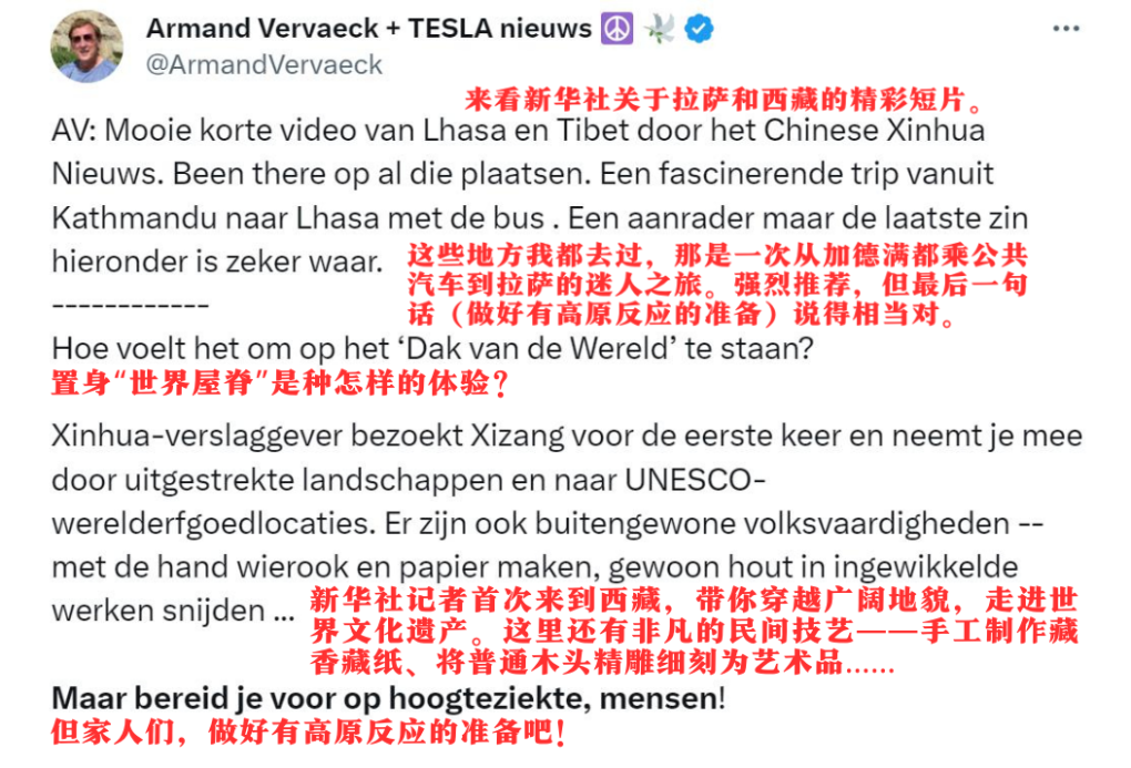 比利時(shí)網(wǎng)友阿曼德·韋爾瓦克(Armand Vervaeck)轉(zhuǎn)發(fā)貼文并評(píng)論: