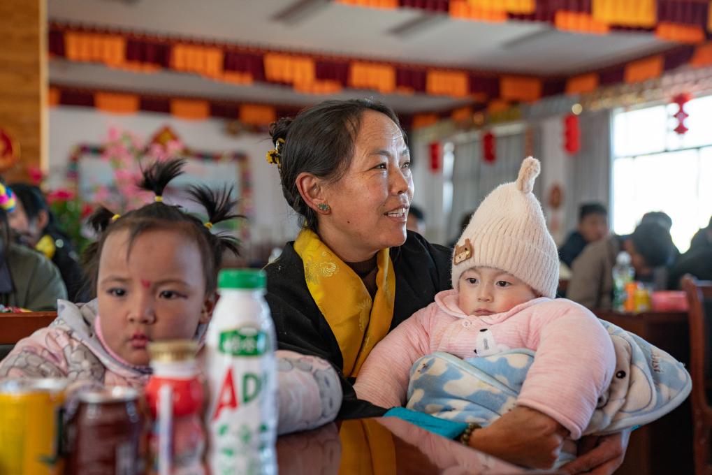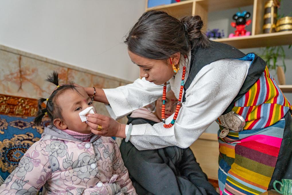 1月8日,愛心媽媽旦增卓瑪在照顧孩子。新華社照片,拉薩,2024年1月9日新華社發(丁增尼達攝)