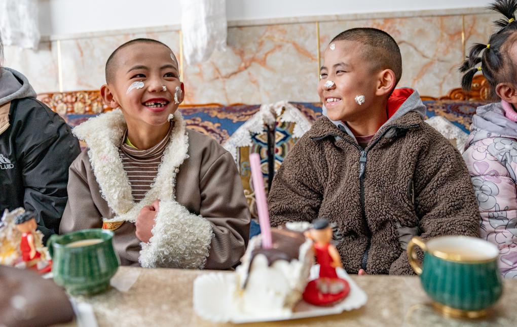 1月8日,“幸福家庭”的孩子們在吃蛋糕。新華社照片,拉薩,2024年1月9日 新華社發(丁增尼達攝)