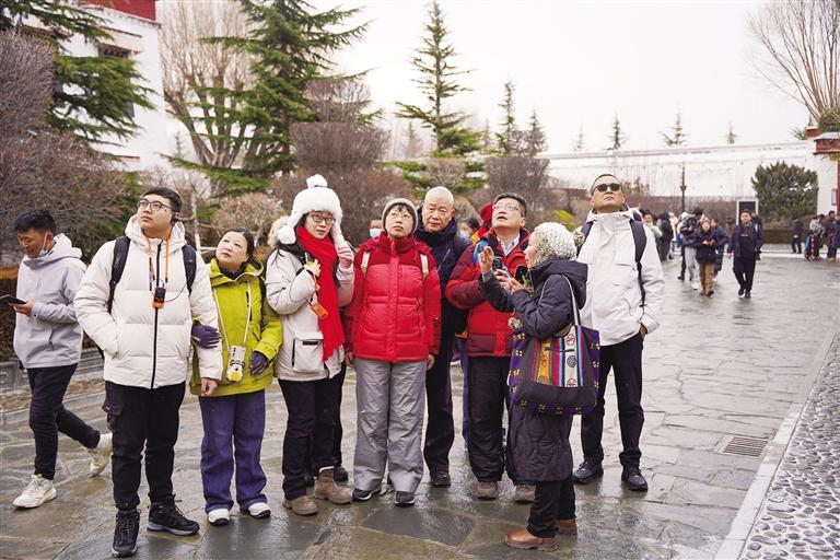 1月16日一大早,拉薩下起了2024年的第一場雪,雪中的布達拉宮有著別樣的美麗。王碧秀帶著幾位從上海來的游客參觀了這座擁有千年歷史的宮殿,細致的講解隨著雪花一起,將雪域高原厚重的歷史文化送進了游客的心里,撒下了希望的種子。總有一天,這些種子會生根發芽,帶著王碧秀和無數導游們的期冀,開出絢麗的花朵,吸引更多人來到西藏、愛上西藏。