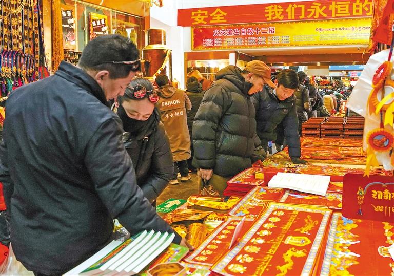 圖為市民在八廓商城內購買春聯。記者 丹增群培 攝