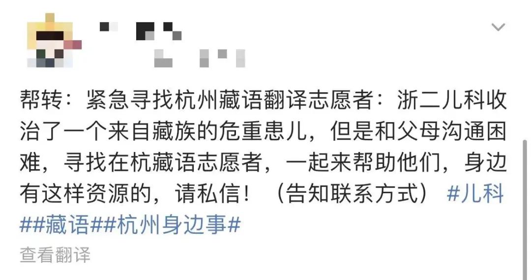 “緊急尋找杭州藏語翻譯志愿者……”