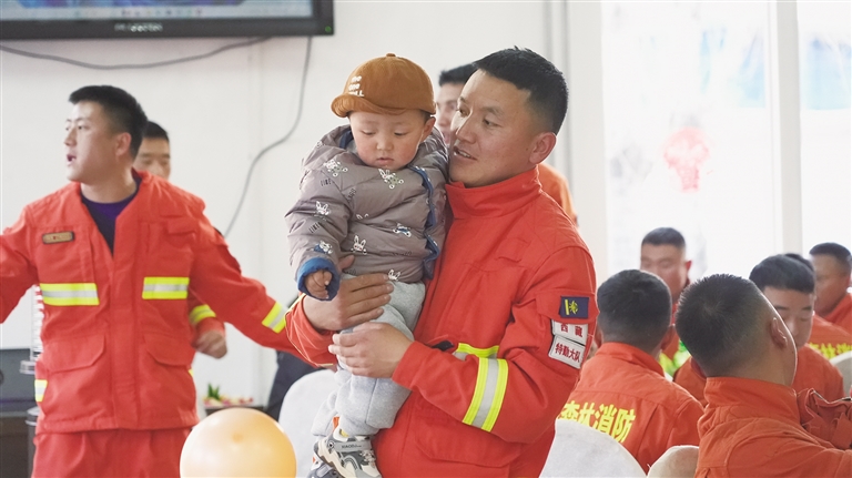 “沒事!我?guī)Ш⒆觼砜茨??!边@是仁增多吉愛人在電話中的話語。春節(jié)前夕,仁增多吉的愛人和兒子來到了專門為他們安排的公寓房里。房間里溫馨而舒適,配齊了水、電、氣等生活設(shè)施,還購買了米面油等生活必需品。“雖然結(jié)婚4年了,這還是第一次在你們單位過年,大隊想我們所想,讓我們一家人團聚,我們也深深地感受到了大隊對一線消防員的關(guān)懷?!比试龆嗉膼廴苏f道。