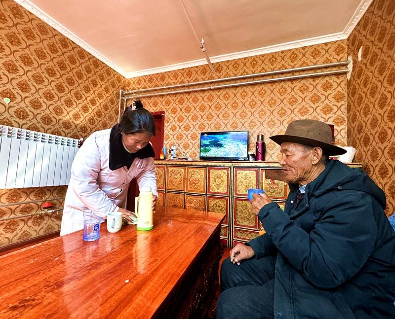 在75歲的瓊拉家里,干凈整潔的一居室暖烘烘的,一進門眼鏡瞬間起了霧。“今年家里通了暖氣,過上了一個暖烘烘的新年,暖了身子,也暖了咱們老人們的心吶!”瓊拉老人高興地摸著掛在墻上的暖氣片說道,這都是共產黨的恩情,讓我們這些孤寡老人過了一個溫暖祥和的藏歷新年。