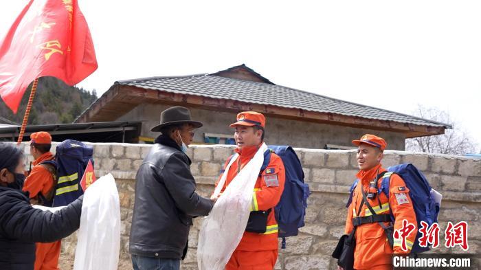 圖為拉練途中駐地民眾為指戰員獻哈達、送上酥油茶。西藏林芝市森林消防支隊供圖