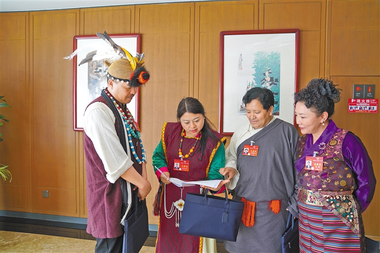 圖為3月6日上午,西藏代表團(tuán)舉行全體會(huì)議,傳達(dá)學(xué)習(xí)習(xí)近平總書記在參加江蘇代表團(tuán)審議時(shí)的重要講話精神,繼續(xù)審議政府工作報(bào)告,審查計(jì)劃報(bào)告和預(yù)算報(bào)告。圖為全國(guó)人大代表扎西尼瑪(中)在會(huì)上發(fā)言。