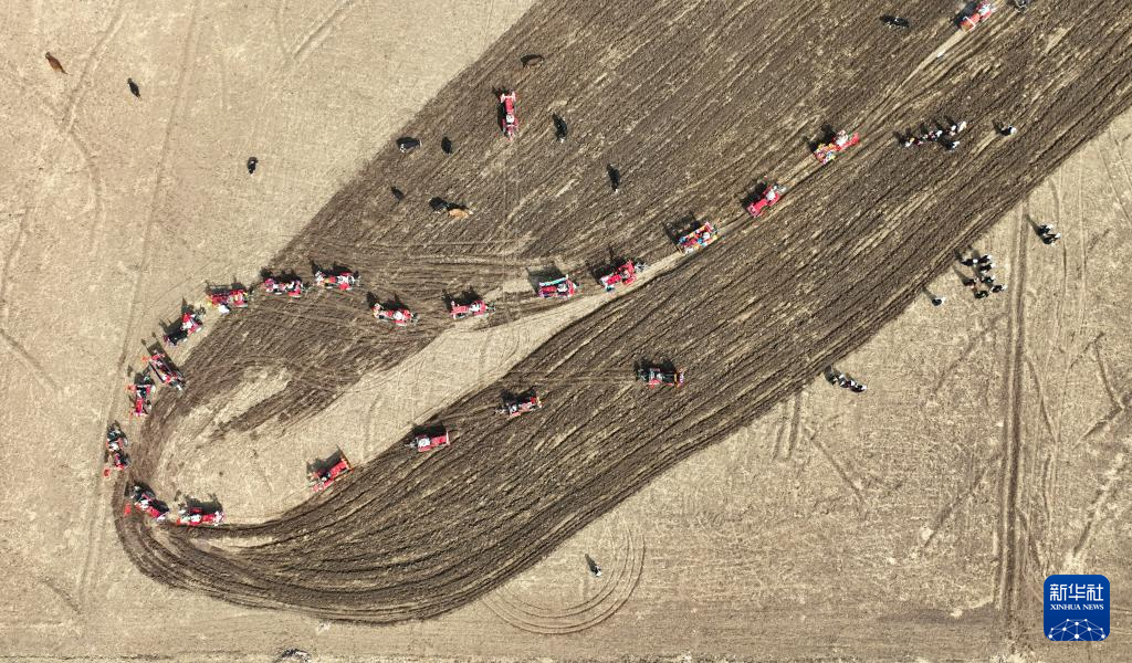 這是3月16日拍攝的西藏拉薩市林周縣強嘎鄉春耕儀式現場(無人機照片)。新華社記者 晉美多吉 攝